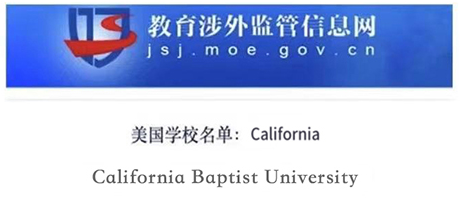 加州浸会大学是中国教育部承认正规院校(教育部涉外监管信息网可查)。