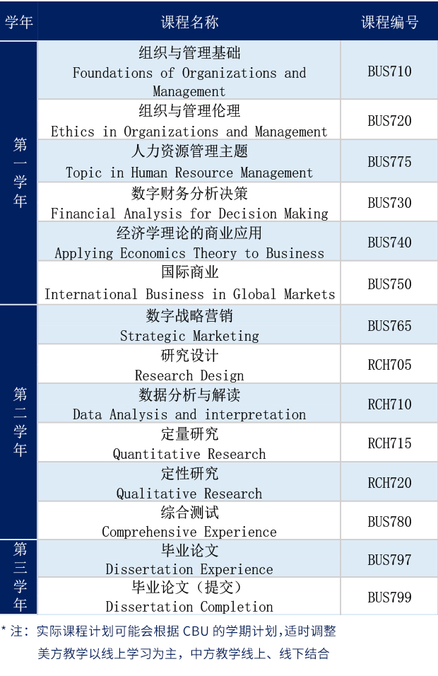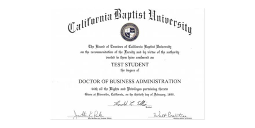 学员在完成所有毕业要求后,将获得加州浸会大学授予工商管理博士学位。该学位证书与学生去加州浸会大学就读所获证书相同。